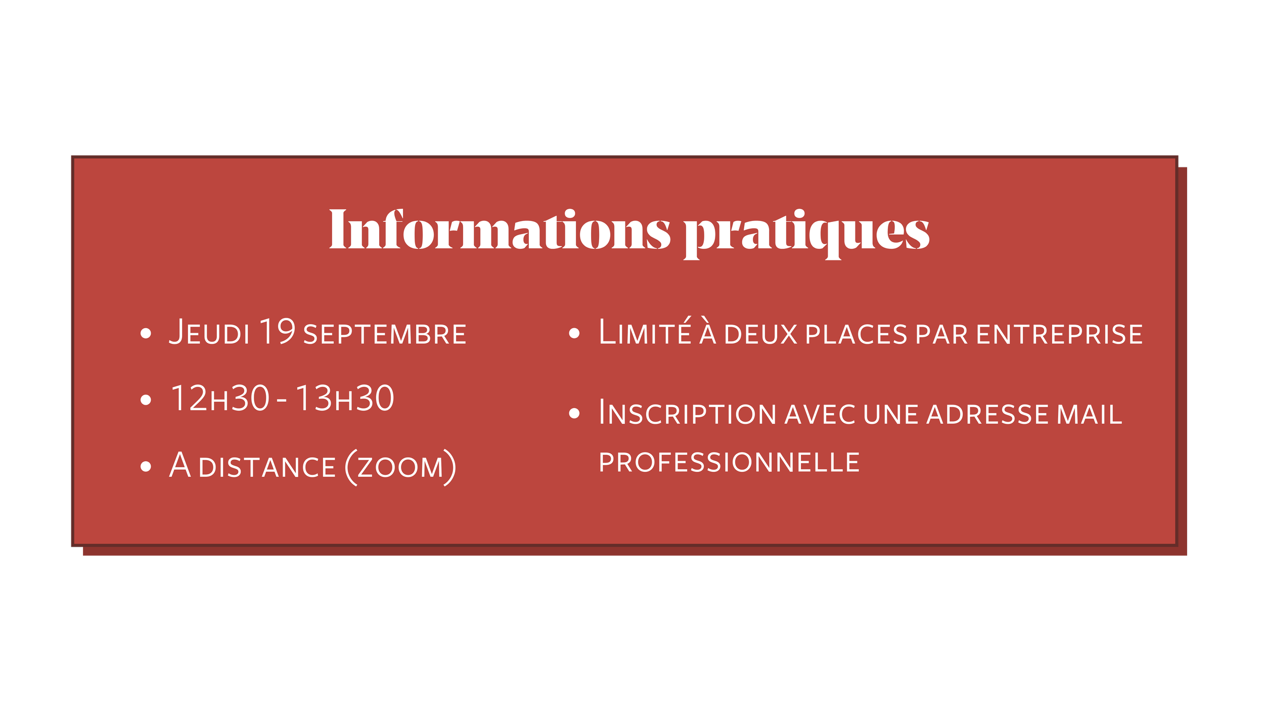 Il est possible d'intégrer à cette conférence une session de question guidée, pendant laquelle Florence répond sans tabou à des questions que nous aurons choisi avec vous en amont (Pourquoi déclarer son handicap en entreprise ? Comment intégrer au mieux une personne en situation de handicap sans son équipe ? etc.)